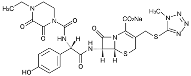 Monosodium(6R,7R)-7-{(2R)-2-[(4-ethyl-2,3-dioxopiperazine-1-carbonyl)amino]-2-(4-hydroxyphenyl)acetylamino}-3-(1-methyl-1H-tetrazol-5-ylsulfanylmethyl)-8-oxo-5-thia-1-azabicyclo[4.2.0]oct-2-ene-2-carboxylate