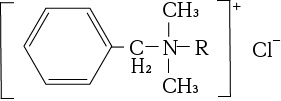 [C6H5CH2N(CH3)2R]ClR:C8H17〜C18H37で主としてC12H25及びC14H29からなる