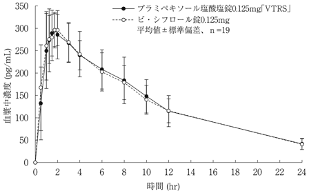 6) 社内資料:生物学的同等性試験(プラミペキソール塩酸塩錠0.125mg「VTRS」)