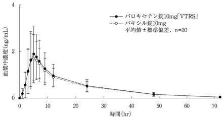 6) 社内資料:生物学的同等性試験(パロキセチン錠10mg「VTRS」)