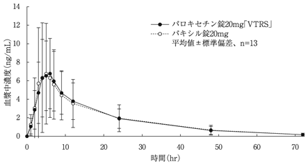 7) 社内資料:生物学的同等性試験(パロキセチン錠20mg「VTRS」)