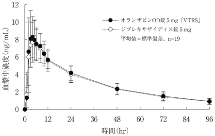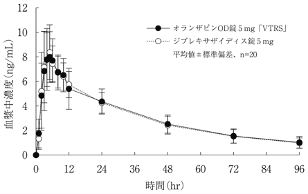 8) 社内資料:生物学的同等性試験(オランザピンOD錠5mg「VTRS」)