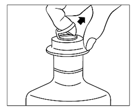 (1)プルオフリングの支柱部が向こう側になるようにボトルを保持する。(2)プルオフリングの上から人差し指を入れ、リングに指をかける。
