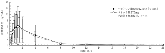 5) 血中濃度(アクトネル錠17.5mg/ベネット錠17.5mg:2007.4.18承認、CTD2.7.6.1)