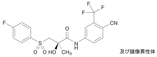 ヒトにおけるビカルタミドの代謝は、水酸化及びグルクロン酸抱合であった。血漿中には未変化体が、尿中には未変化体のグルクロン酸抱合体及び水酸化体のグルクロン酸抱合体が、糞中には未変化体及び水酸化体が認められた5)(外国人データ)。