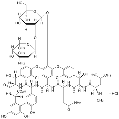 (1S,2R,18R,19R,22S,25R,28R,40S)-50-[3-Amino-2,3,6-trideoxy-3-C-methyl-α-L-lyxo-hexopyranosyl-(1→2)-β-D-glucopyranosyloxy]-22-carbamoylmethyl-5,15-dichloro-2,18,32,35,37-pentahydroxy-19-[(2R)-4-methyl-2-(methylamino)pentanoylamino]-20,23,26,42,44-pentaoxo-7,13-dioxa-21,24,27,41,43-pentaazaoctacyclo[26.14.2.23,6.214,17.18,12.129,33.010,25.034,39]pentaconta-3,5,8,10,12(50),14,16,29,31,33(49),34,36,38,45,47-pentadecaene-40-carboxylic acid monohydrochloride