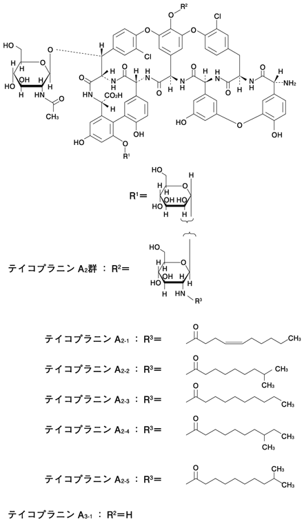 テイコプラニンA2-1、テイコプラニンA2-2、テイコプラニンA2-3、テイコプラニンA2-4、テイコプラニンA2-5及びテイコプラニンA3-1等の混合物