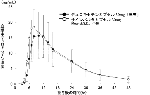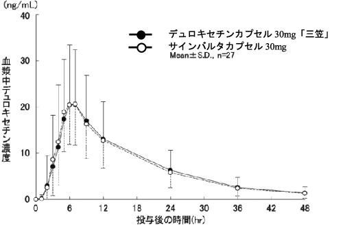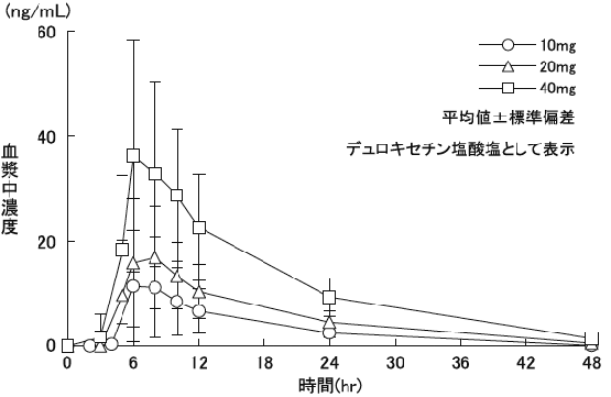 7) 臨床における薬物動態(サインバルタカプセル:2010年1月20日承認、申請資料概要2.7.1.2,2.7.2.2,2.7.2.3)
