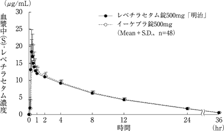 5) 社内資料:レベチラセタム錠500mg「明治」の生物学的同等性試験に関する資料