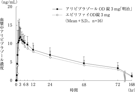 6) 社内資料:アリピプラゾールOD錠3mg「明治」の生物学的同等性試験に関する資料