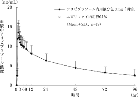 3) 社内資料:アリピプラゾール内用液分包3mg「明治」の生物学的同等性試験に関する資料