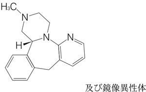 ミルタザピンは白色~乳白色の結晶又は粉末である。メタノール及びエタノールに溶けやすく、水にほとんど溶けない。