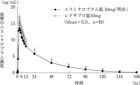 5) 社内資料:エスシタロプラム錠10mg「明治」の生物学的同等性試験に関する資料