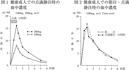 健康成人に本剤100mg(力価)又は200mg(力価)を筋注した場合の8時間までの平均尿中排泄率はそれぞれ、70.3%、72.4%である。また、1時間点滴静注の場合、点滴終了後6時間までの平均尿中排泄率はそれぞれ64.4%、68.8%で、ともに速やかに尿中に排泄される4),5)。