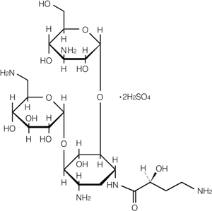 3-Amino-3-deoxy-α-D-glucopyranosyl-(1→6)-[6-amino-6-deoxy-α-D-glucopyranosyl-(1→4)]-1-N-[(2S)-4-amino-2-hydroxybutanoyl]-2-deoxy-D-streptamine disulfate