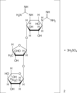 2-Deoxy-2-methylamino-α-L-glucopyranosyl-(1→2)-5-deoxy-3-C-formyl-α-L-lyxofuranosyl-(1→4)-N,N'-diamidino-D-streptamine sesquisulfate