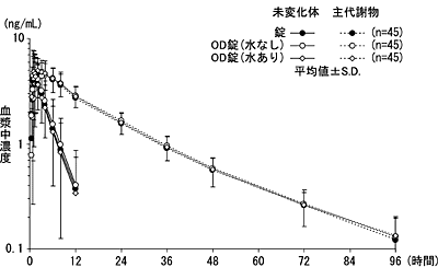 本剤及び活性代謝物の血中濃度が上昇することがある。