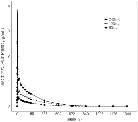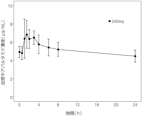 注)承認用法・用量は通常、成人にはアパルタミドとして1日1回240mgを経口投与する。