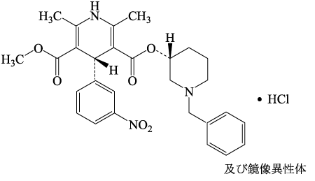 ヒトの血漿中、尿中に検出された代謝物及び動物での代謝研究から、ヒトにおける代謝反応は主として3位側鎖のベンジル基の脱離(N-脱アルキル化)、3位の1-ベンジル-3-ピペリジルエステル及び5位のメチルエステルの加水分解、ジヒドロピリジン環の酸化、2位のメチル基の酸化と考えられている6),7)。