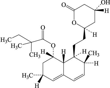 in vitroにおいてシンバスタチンのオープンアシド体はHMG-CoA還元酵素を拮抗的に阻害した。シンバスタチンは各種培養細胞を用いた試験及びラットに経口投与した試験において[14C]酢酸からの[14C]コレステロール合成を阻害した13),15)。また、ヒト肝癌細胞由来のHep G2細胞を用いた試験13)及びコレステロール負荷ウサギに経口投与した試験14)において、シンバスタチンは肝LDL受容体活性を増強させた。