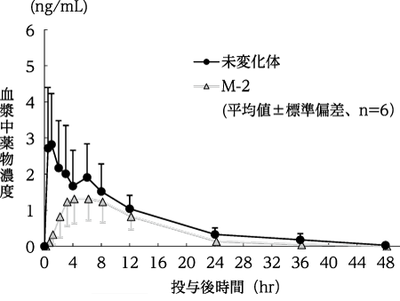 本剤の血漿中薬物濃度の有意な上昇(Cmax:+55.9%、AUC0-Tlast:+81.8%)がみられた。