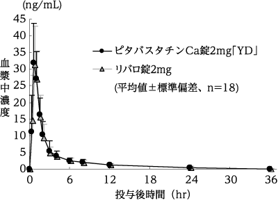 ピタバスタチンCa錠1mg「YD」は「含量が異なる経口固形製剤の生物学的同等性試験ガイドライン(平成18年11月24日 薬食審査発第1124004号)」に基づき、ピタバスタチンCa錠2mg「YD」を標準製剤としたとき、溶出挙動に基づき生物学的に同等とみなされた19)。