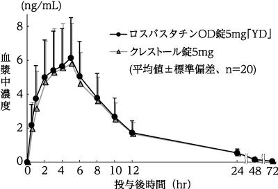 5) 単回投与後の血漿中濃度(クレストール錠:2005年1月19日承認、申請資料概要へ.3.3.1.2)