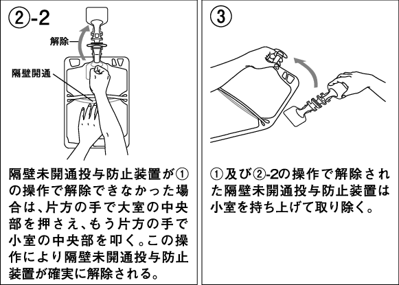 容器を外袋から取り出した後、以下の図のように取り扱う。
