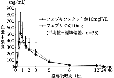 5) 血漿中濃度(健康成人、単回)(フェブリク錠:2011年1月21日承認、申請資料概要2.7.6.5)