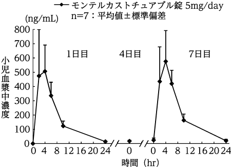 小児患者におけるモンテルカストチュアブル錠5mg反復経口投与時の血漿中濃度推移