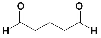 グルタラール分子[OHC-(CH2)3-CHO] の両端に位置するアルデヒド基が菌体構成アミノ酸のスルフヒドリル基(-SH) あるいはアミノ基(-NH2) と反応し、また、微生物のDNA 合成・蛋白合成を阻害し、死滅させると考えられている。