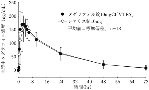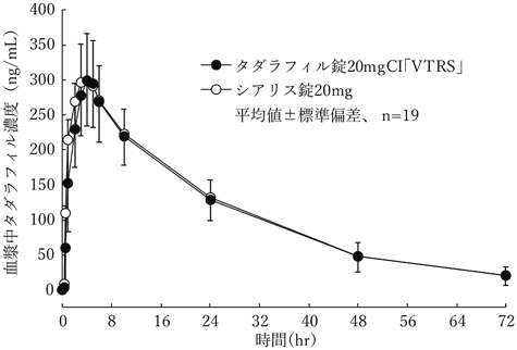 22) 社内資料:生物学的同等性に関する資料(タダラフィル錠CI「VTRS」)