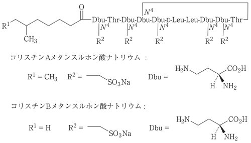 コリスチンAメタンスルホン酸ナトリウム C58H105N16Na5O28S5コリスチンBメタンスルホン酸ナトリウム C57H103N16Na5O28S5