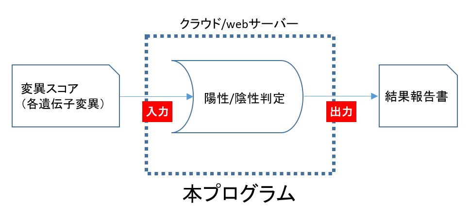 1.動作原理クラウド上の本プログラムは、閾値に基づき、変異スコアより陽性陰性判定を行う。判定結果はダウンロードすることができる。2.提供形態プログラム使用権の販売。