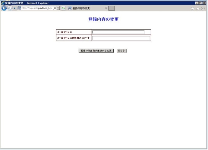 (2)-2.登録したメールアドレスを入力して『配信の停止及び登録内容変更』を押下してください。![]() |